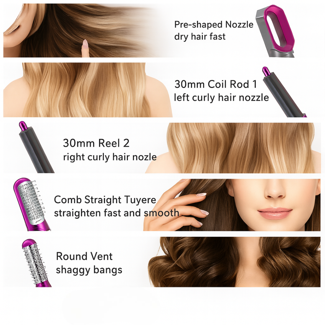✔ You get 5 premium styling attachments for drying, curling, straightening, smoothing, and adding volume.